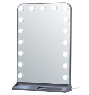 Luxusní LED makeup zrcadlo s hollywoodským osvětlením a 10x zvětšovacím zrcátkem. 18W LED pásy s nastavitelnou teplotou barev 3000-6000K, dotykové ovládání, USB-A/USB-C porty pro nabíjení, digitální …