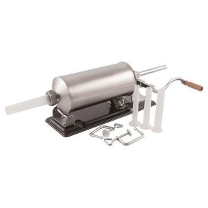 Ruční plnička klobás z odolné slitiny hliníku s certifikací pro styk potravinami.