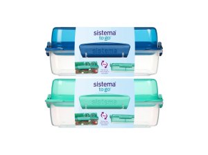 Sistema® TO GO™ Krabička na oběd Flip and Nest 1,8 l díky inovativnímu designu umožňuje horní nádobu zasouvat do spodní, čímž se krabička po vyprázdnění zkompaktní a šetří cenné místo v batohu nebo …