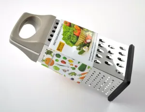 Profesionální středně velké 4 stěnné nerezové struhadlo s plastovou rukojetí, silikonová protiskluzná podstava.