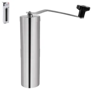 Ruční mlýnek na kávu moderního tvaru čerstvě namele zrnkovou kávu.