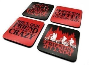 Balení podtácků s motivem seriálu Stranger Things, obsahuje 4 ks podtácků v rozměru 10x10 cm