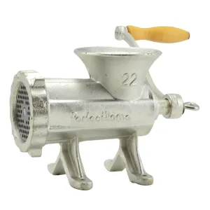 Litinový mlýnek masa č. 22. Balení obsahuje mlýnek, nůž a desku.