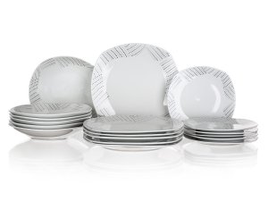 Sada jídelní CHARME square 18díl., porcelánová. sada obsahuje: 6 x dezertní talíř, diagonála 20 cm, šířka 18,5 cm 6 x hluboký talíř, diagonála 23 cm, šířka 22 cm 6 x mělký talíř, diagonála 27 cm, šířka …