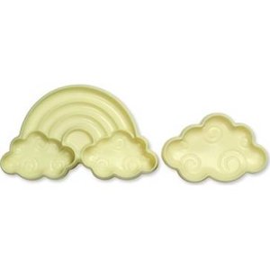 Plastová forma v podobě mraků a duhy.