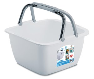 Kvalitní pevný lavor / mísa / miska / umyvadlo s úchyty pro snadné přenášení. Čtvrercový tvar rozměry 34 x 32.1 x 14.6 cm, objem 9 litrů.