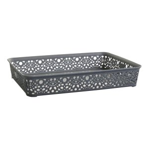 Košík MONAKO M 36 x 27 x 6 cm, PH, šedá metalíza. velikost: 36 x 27 x 6 cm barva: šedá metalíza materiál: plast Elegantní plastový košík určený pro domácnost.