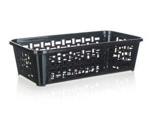 Větší plastový košík, rozměry 34 x 24 x 13 cm.