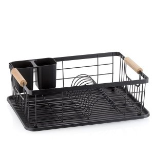 Odkapávač na nádobí černý s detaily v růžovém zlatěStylový a praktický pomocník, který vám usnadní každodenní organizaci v kuchyni.