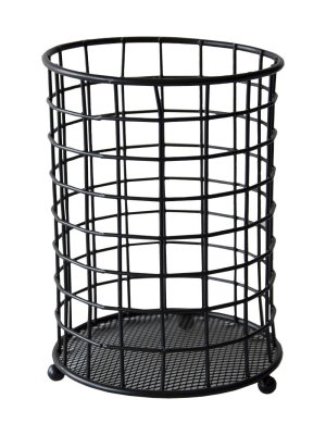 Kvalitní kovový černě lakovaný kulatý odkapávač nebo stojan na příbory.