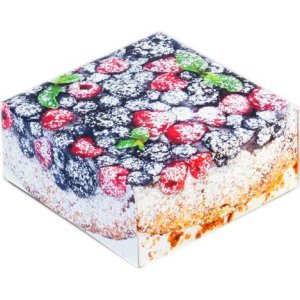 Menší krabička z potištěného papíru na přenášení zákusků.