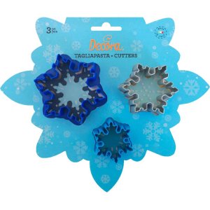 Sada tří plastových vykrajovátek ve tvaru sněhové vločky.