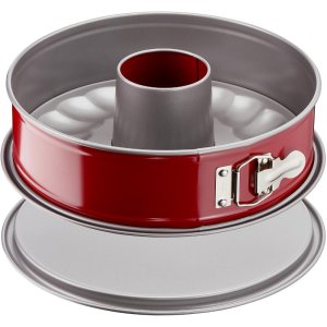 Forma na bábovku Tefal Delibake J1642874 27 cm Rozkládací forma s průměrem 27 cm Snadné vyjmutí z formy Zabránění přetečení Nepřilnavý povrch Snadné čištění V šedé a červené barvě