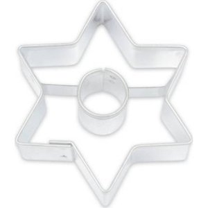 Vykrajovátko cukroví ve tvaru hvězdy s kolečkem uprostřed.