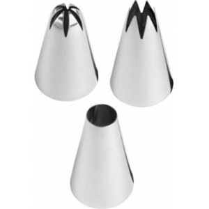 Sada obsahuje špičky na zdobení muffinů, zdobící sáček a spojku.