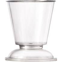Hranatý pohár má zkosené strany a díky výrobnímu materiálu (PS), který připomíná plexisklo a má zelenkavý nádech se v něm zajímavě odráží světlo a vytváří se duhové odlesky.