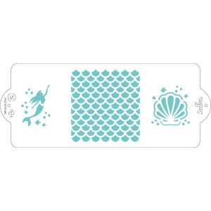Šablona na stencil s motivy rybí šupiny a malé mořské víly.
