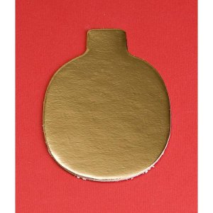 Kulatá podložka pod dort vyrobena z buničiny, potažena hliníkem.