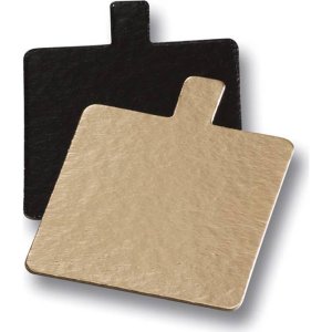 Čtvercová podložka pod minidezert je vyrobena z buničiny, potažena hliníkem.