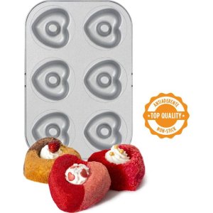 Forma na pečení z nepřilnavého materiálu ve tvaru srdcí.