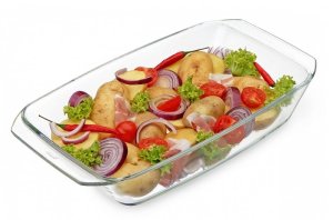 Obdélníkový pekáč z odolného skla vhodný do každého typu pečící trouby.