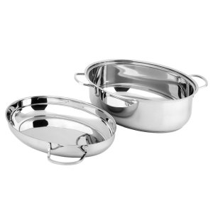 Nerezový pekáč s víkem a roštem.
