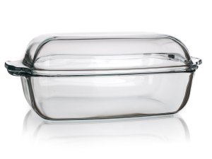 Pekáč hranatý s víkem 5,5 l se vyrábí z tvrdého boritokřemičitého skla, které velmi odolné mechanicky i teplotně ( odolnost +300 / -40 stupňů ).