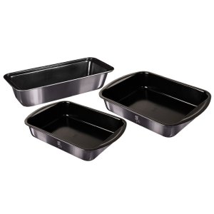 - sada pečících plechů do trouby s titanovým povrchem- celkem 3 kusy různých pekáčů a forem- hluboký pečící plech 35 x 27 x 6,5 cm- hluboký pečící plech 40 x 28,5 x 7 cm- forma na biskupský chlebíček …