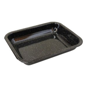 Pekáč 42 x 29 x 6 cm, smalt, BANQUET. rozměry): 42 x 29 x 6 cm mteriál: smaltovaná ocel tloušťka stěny. 0,7 mm barva: černá Smaltovaný plech na pečení. myčka: ne trouba: ano