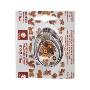 Tři vykrajovátka z kvalitního pocínovaného plechu – ježek, jablko a hruška.