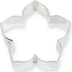 Vykrajovátko na cukroví z různých druhů těsta ve tvaru lilie s rozměry 4,5 x 4,3 cm.