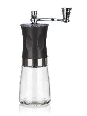 Mechanický mlýnek na kávu CULINARIA 19 cm je dodáván v černém provedení se skleněným zásobníkem.