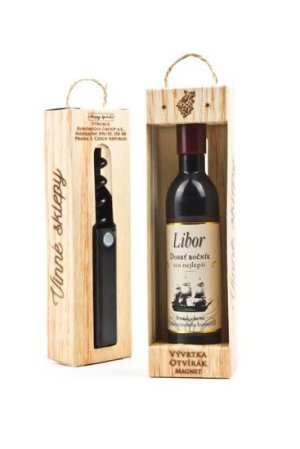 Vývrtka ve tvaru vinné lahve s originálním potiskem viněty je vhodným dárkem pro všechny milovníky vína.