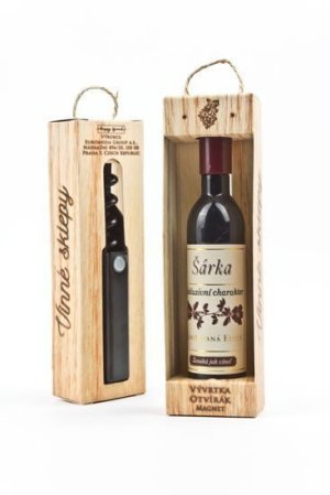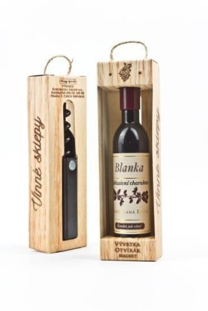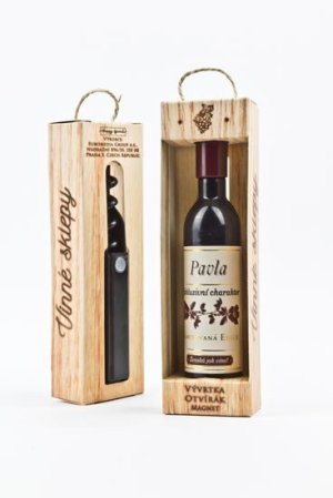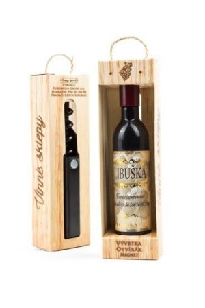 Vývrtka ve tvaru vinné lahve s originálním potiskem viněty je vhodným dárkem pro všechny milovníky vína.