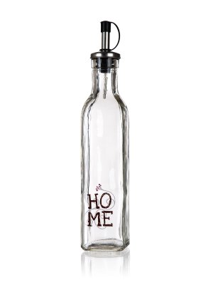 Láhev na olej 500 ml HOME, skleněná. objem: 500 ml Láhev na olej s dekorem HOME hranatého tvaru, vyrobená ze skla, je ideální pomocník do kuchyně.