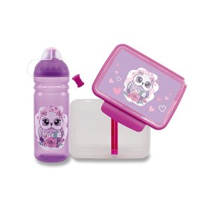 Dvoudílná jídelní sada nejen do školy, ale i na výlety. sada obsahuje láhev o objemu 380 ml svačinový box vyrobeno z odolného materiálu