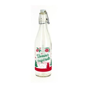 Láhev s dekorem na slivovičku, vaječný likér, sirup, šťávu a jiné nápoje.