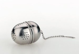 Závěsné sítko na čaj ve tvaru vajíčka.