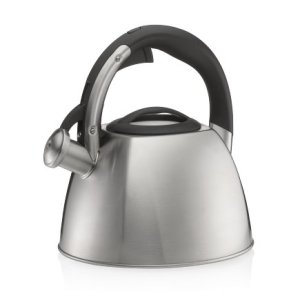 Klasická pískací konvice z nerezové oceli se saténovou povrchovou úpravou.