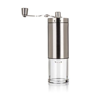 Mechanický mlýnek na kávu AKCENT 18 cm je dodáván v nerezovém provedení se plastovým průhledným zásobníkem.