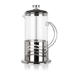 Skleněná borosilikátová konvice s nerezovým stlačovacím sítkem.