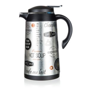 Termokonvice CONTE s potiskem 1 l, má skleněnou termoizolační vložku a vnější část je vyrobena z kovu a plastu.