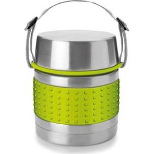 Termomísa v plastovém obalu s nerezovým vnitřkem udrží vložený pokrm po dlouhou dobu teplý nebo naopak chladný.