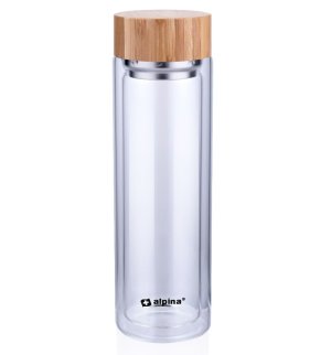 Lehká a praktická kulatá láhev z borosilikového skla.