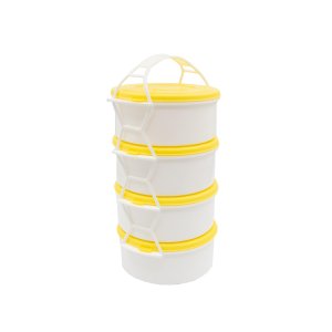 Jídlonosič 4 x 1 l, PH mix barev. 4 díly objem: 4 x 1,0 l materiál: plast bílá miska, barevné víčko mix barev: žlutá, oranžová, růžová, červená, zelená Box na ukládání a přepravu jídla, složený ze 4 …
