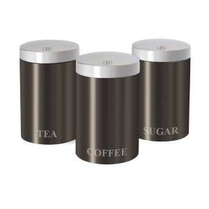 - sada 3 kusů designových dóz na potraviny z kolekce Royal Black- tělo i víko jsou vyrobené z nerezové oceli- určené především pro skladování suchých potravin- dózy jsou ideální na kávu, čaj, cukr, mouku, …
