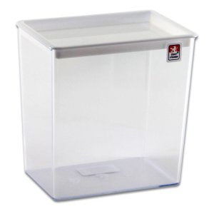Transparentní krabice s měrkou vhodná na uchování potravin.