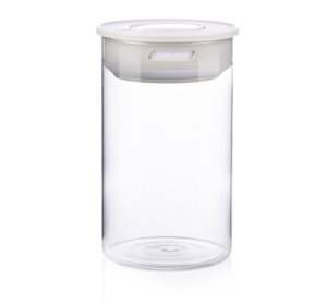 Nádoba z kvalitního skla s plastovým víkem má univerzální použití.