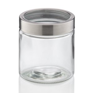 Skleněná dóza s víkem pro uchování čerstvosti oblíbených sladkostí.