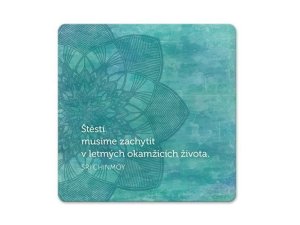 Korkový podtácek s citátem a mandalou je praktickou a inspirující dekorací.